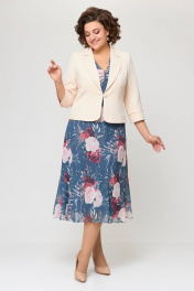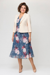 Демисезонный комплект из костюмной ткани: платье и жакет Slaviaelit 166 лазурно-серый+пудровый