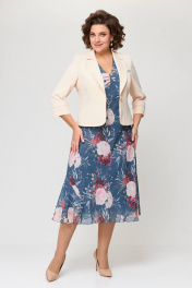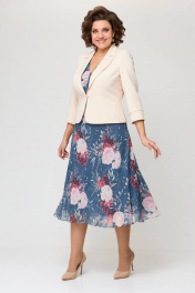 Костюм женский состоит из платья и жакета. Платье выполнено шифона на шифоновой подкладке. А-образного силуэта, покрой юбки "по косой". По спинке в среднем шве застежка на молнию. Жакет выполнен из костюмной ткани на подкладке. Жакет полуприлегающего силуэта. Воротник пиджачного типа. Рукав втачной длиной 3/4 с манжетой. Возможно отличие фотографии по оттенку, связанное с разной цветопередачей. ЖАКЕТ: Длина жакета по спинке р.50,52 - 54см, р.54,56,58 - 55см, р.60 - 58см (допуск (+-) 1 см) Длина рукава р.50,52,54,56,58,60 - 48 см (допуск (+-) 1 см) Ширина спинки 1/2: р.50,52 - 20,3см, р.54,56,58 - 21см, р.60 - 62см (допуск (+-) 1 см) Ширина по линии талии 1/2: р.50 - 47см, р.52 - 49см, р.54 - 52,5см, р.56 - 54,5см, р.58 - 56,5см, р.60 - 58см(допуск (+-) 1 см) Ширина по линии бёдер 1/2: р.50 - 54см, р.52 - 56см, р.54 - 59см, р.56 - 61см, р.58 - 63см, р.60 - 65см (допуск (+-) 1 см) Ширина рукава под проймой 1/2: р.50 - 18,5см, р.52 - 19,5см, р.54 - 20,5см,р.56 - 21,5см, р.58 - 22,5см, р.60 - 23см (допуск (+-) 0,5 см) Ширина плеча: р.50,52,54,56,58 - 12,5 см, р.60 - 13см ПЛАТЬЕ: Длина по среднему шву спинки р.50,52 - 115см, р.54,56,58 - 117см, р.60 - 122см (допуск (+-) 2 см) Ширина по линии груди 1/2: р.50 - 52см, р.52 - 54см, р.54 - 55см, р.56 - 57см, р.58 - 59см, р.60 - 61см (допуск (+-) 1 см) Ширина по линии талии 1/2: р.50 - 44см. р.52 - 46см, р.54 - 48см, р.56 - 50см, р.58 - 52см, р.60 - 54 см (допуск (+-) 1 см) Ширина по линии бёдер 1/2: р.50 - 58см, р.52 - 60см, р.54 - 62см, р.56 - 64см, р.58 - 66см, р.60 - 68 см (допуск (+-) 1 см) Ширина плеча: р.50,52 - 10см, р.54,56,58 - 9 см, р.60 - 10,5см (допуск (+-) 0,5 см) Длина рукава р.50,52 - 21см, р.54,56,58 - 23см, р.60 - 25 см (допуск (+-) 1 см)