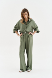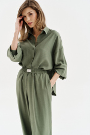 Брюки из льна с поясом резинкой для комфортного образа SODA 4835 хаки