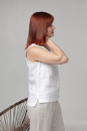 Льняная блуза короткий рукав с пуговицами и вырезом Соджи 609-1 белый