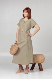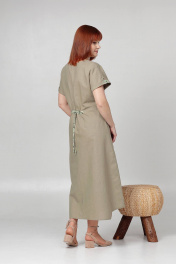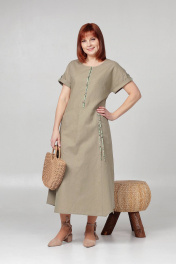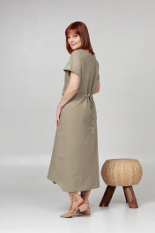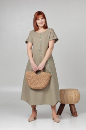 Летнее платье свободного кроя с кулисой на талии Соджи 613 оливковый