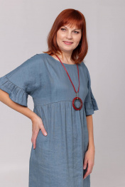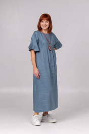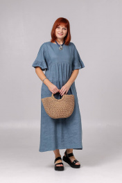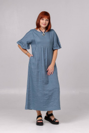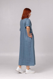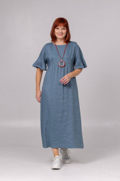 Платье женское свободного покроя, со спущенным плечевым швом, подрезом ниже линии груди по переду и спинке. Нижняя часть переда и спинки, присборена по линии подреза. В боковых швах карманы. Длина изделия - 127 см.