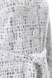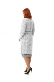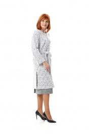 Кардиган женский, прямого силуэта. Перед с нагрудной вытачкой из проймы и накладными карманами. В боковых швах - разрезы. Центральная застежка на петли и пуговицы. Рукав втачной, без плечевых накладок. Тканеый пояс в комплекте. Длина рукава - 58 см, длина изделия по спинке - 102 см.