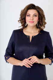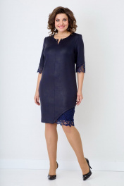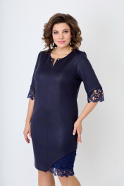 Нарядное женское платье, предназначенное для женщин молодого и среднего возраста. Полуприлегающего силуэта. Передняя часть изделия со средним швом. Декоративная вставка из кружева по боковому шву. По переду нагрудные выточки. Горловина округлая, с элегантным и небольшим разрезом по середине, украшено декоративной булавкой. Рукав втачной, по низу рукава декоративные подрезы с кружевной вставкой. Дизайн кружева может меняться. Спинка со средним швом. Рекомендуемые размеры с 50-58.