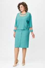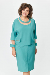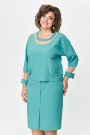 Костюм из текстиля с блузой и юбкой с металлической цепочкой Solomeya Lux 949 мятный