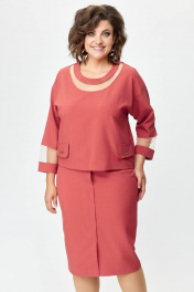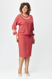 Костюм из текстиля с блузой и юбкой с цепочкой декором Solomeya Lux 949 терракотовый