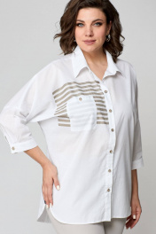 Белая удлиненная рубашка из хлопка с накладным карманом Solomeya Lux 968 белый