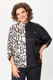 Блуза летучая мышь из комбинированных тканей с украшением Solomeya Lux 968С