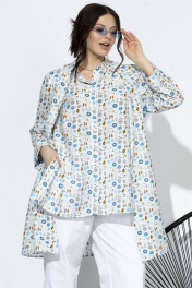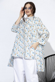 Летняя рубашка из вискозы с мультиколором SOVA 11180 молочный_дизайн