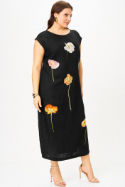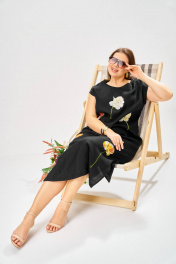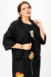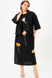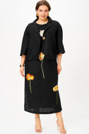 Летний льняной костюм двойка. Жакет выполнен из льна. Свободный без подкладки. рукав реглан. Застежка на одну пуговицу. Яркое льняное платье. Удивительно комфортное для жаркого лета. Платье прямого силуэта. Спущенная линия плеча. Цветочная авторская вышивка придаёт изделию этнический и аутентичный стиль. В боковых швах разрезы. По спинке расположена функциональная молния. Самобытность в современной трактовке.