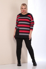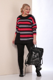 Трикотажный джемпер свободного скина со спущенным плечом SOVITA 2134 полоска