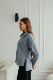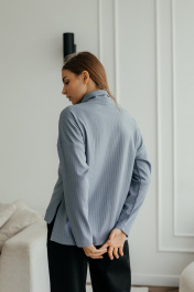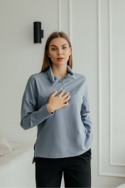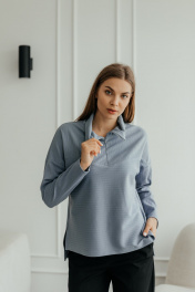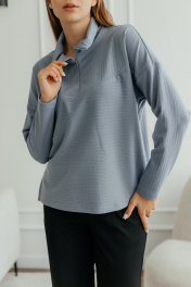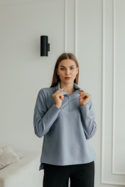 Демисезонный джемпер поло из трикотажа с воротником и молнией Стильная леди М-1009 голубой