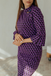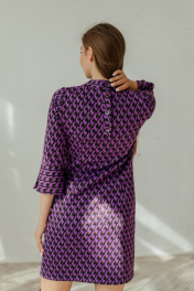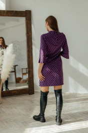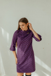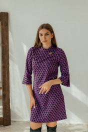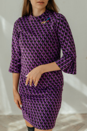 Мини платье с рукавами 3/4 и брошей-стрекозой Стильная леди М-221 фиолетовый
