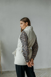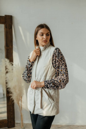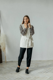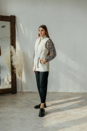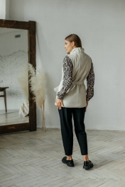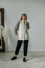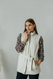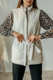 Бежевый жилет из экокожи с поясом и карманами Стильная леди М-677 молочный
