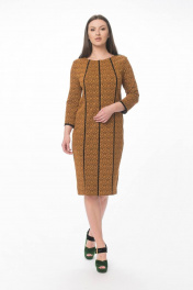 Платье из трикотажа с кантами из замши и шлицей по спинке Stilville 1840 горчица