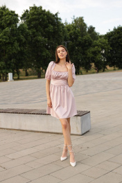 Это летнее нарядное платье из атласа цвета пудры источает нежность и элегантность. Сборки на груди добавляют объема и акцента, придавая платью изысканность. Рукава фонарики придают ему игривый и легкий вид. Талия эффектно подчеркивается широким втачным поясом, создавая изящную силуэтную линию. Длина мини подчеркивает стройность ног и придает образу свежести. Особый акцент на платье делает кружево, которым обшита зона декольте. Оно придает платью романтичность и чувственность, добавляя шарма и привлекательности. Это платье идеально подходит для особых мероприятий, вечеринок или свиданий, где вы хотите выглядеть неповторимо и захватывающе. Комбинируйте его с аксессуарами в соответствии с вашим стилем, чтобы создать завершенный и незабываемый образ. Карманы: нет. Длина по спинке регулируется резинкой, рукав короткий, длина юбки с подъюбником 53 см. Рост модели 178 см Размер (42) Рост 164-170 Обхват груди: 82-85 Обхват талии: 66-69 Обхват бедер: 92-95 Размер (44) Рост 164-170 Обхват груди: 86-89 Обхват талии: 70-73 Обхват бедер: 96-98 Размер (46) Рост 164-170 Обхват груди: 90-93 Обхват талии: 74-77 Обхват бедер: 99-101 Размер (48) Рост 164-170 Обхват груди: 94-97 Обхват талии: 78-81 Обхват бедер: 102-104