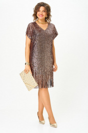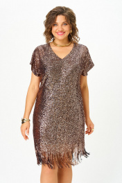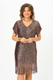 Платье нарядное с пайетками и бахромой прямого кроя, выполнено в комплектации из двух предметов. Линия плеча спущена. Вырез горловины v-образный. Нижнее платье полуприлегающего силуэта, на регулируемых бретелях. По линии груди вытачки. Длина платья: 99 см Длина рукава от горловины: 29 см