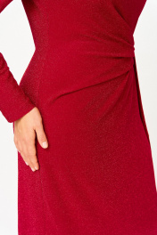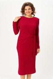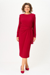 Платье женское нарядное полуприлегающего силуэта, длиной миди. Горловина округлой формы с застежкой по спинке на воздушную петлю и пуговицу. Спинка со средним швом. Рукав втачной длинный. По линии талии элегантный пояс, регулируется по фигуре, подчеркнет талию и добавит образу оригинальность и изюминку. Длина платья: 110 см Длина рукава от горловины: 61 см