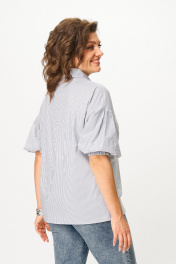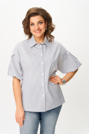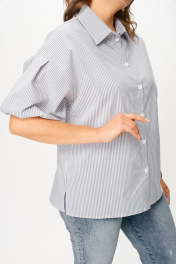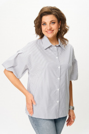 Блузка женская свободного силуэта выполнена из легкой хлопковой ткани. Линия плеча спущенная. Застежка центральная на петли и пуговицы. По горловине отложной воротник на стойке. Рукава длиной ¾ объемные к низу, добавляют романтичности и легкости. Разрезы по низу в боковых швах. Длина блузки по спинке: 66 см Длина рукава от горловины: 61 см
