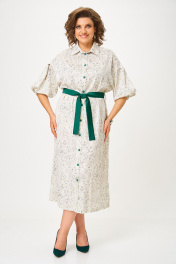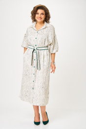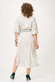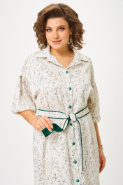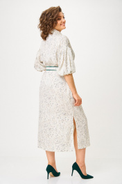 Платье-рубашка прямого кроя, с втачным рукавом. Линия плеча спущенная. Воротник классический на стойке. Застежка центральная на петли и пуговицы. Рукава длиной ¾ объемные к низу, добавляют романтичности и легкости. Боковые карманы и пояс по талии добавляют удобства и подчеркивают талию. В боковых швах разрезы. Длина спинки: 126 см Длина рукава от горловины: 55 см