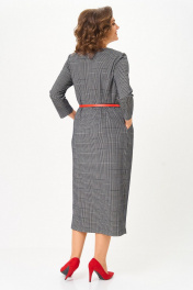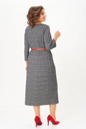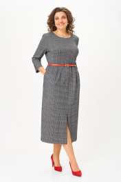 Платье женское полуприлегающего силуэта с втачным рукавом. Перед платья с горизонтальным эластичным швом по талии. Верхняя часть с вытачками по линии груди, нижняя часть со складками в области талии и карманами что обеспечивает прекрасную посадку и подчеркивает фигуру. Рукав длиной 7/8. Высокие разрезы по бокам и переду платья добавляют удобства. В комплекте съемный ремень. Фурнитура может меняться от наличия. Длина платья по спинке: 123 см Длина рукава: 50 см