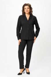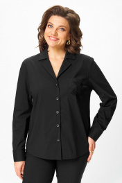 Блузка женская из хлопковой ткани, прямого силуэта с втачным рукавом. Линия плеча слегка спущена. Застежка центральная на петли и пуговицы. Воротник отложной с лацканами. Перед с вытачками по линии груди. По левой части переда накладной карман с отделкой. Рукав длинный рубашечный, по низу притачная манжета с застежкой петли и пуговицы. Линия низа фигурная. Фурнитура может меняться от наличия. Длина блузки по спинке: 65 см Длина рукава от горловины: 75 см