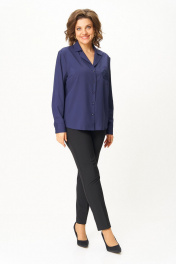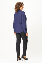 Блузка женская из хлопковой ткани, прямого силуэта с втачным рукавом. Линия плеча слегка спущена. Застежка центральная на петли и пуговицы. Воротник отложной с лацканами. Перед с вытачками по линии груди. По левой части переда накладной карман с отделкой. Рукав длинный рубашечный, по низу притачная манжета с застежкой петли и пуговицы. Линия низа фигурная. Фурнитура может меняться от наличия. Длина блузки по спинке: 65 см Длина рукава от горловины: 75 см