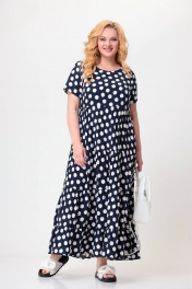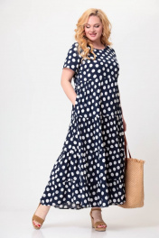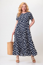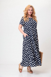 Платье макси из вискозы с воланами и карманами Swallow 561 темно-синий_в_белые_горохи