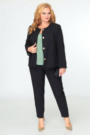 Деловой комплект 3 предмета из текстиля с блузой Swallow 603 черный/олива