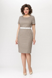 Платье из хлопкового денима с рельефами и шлицей на спинке Swallow 659.1 песочный