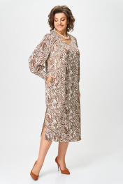 Платье из мягкой вискозной ткани с карманами и разрезами Swallow 663 принт_рыжая_зебра