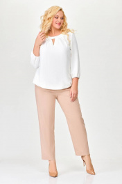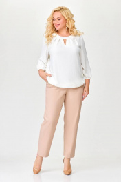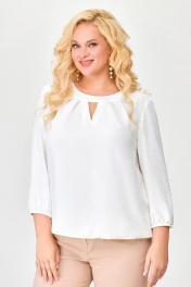 Блуза женская прямого силуэта, выполнена из эластичной вискозной ткани с эффектом крэш. Перед блузы цельнокроеный. Горловина круглая, обработана обтачкой. От центральной части обтачки обработан фигурный вырез и четыре встречные складки. Спинка цельнокроеная. Рукава 4/5, втачные. По низу рукава и по низу блузки вставлена эластичная тесьма, которая позволяет регулировать длину рукава и длину изделия. Длина рукава в размерах 52, 54, 56 -- 48см (+/-1см). Длина рукава в размерах 58, 60, 62 – 50 см (+/-1см). Длина рукава в размерах 64,66,68 – 51 см (+/-1см). Длина изделия по спинке max в 52, 54, 56 размерах - 70см (+/-1см). Длина изделия по спинке max в 58, 60, 62 размерах - 71см (+/-1см). Длина изделия по спинке max в 64, 66, 68 размерах - 75см (+/-1см). Данная блуза прекрасно сочетается с брюками Модель 658, 525, 476.