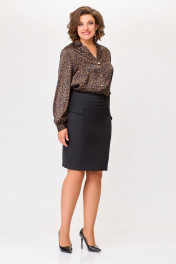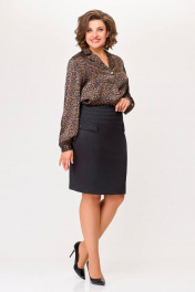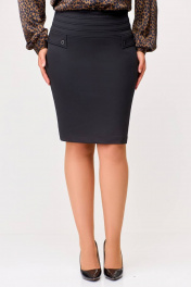 Юбка женская на подкладке, прилегающего силуэта. По переду юбки клапаны с двумя пришивными пуговицами. Кокетка по переду разрезная из 4х частей. По кокетке и клапанам проложены отделочные строчки. По заднему полотнищу юбки кокетка цельная. В среднем шве юбки потайная молния и разрез. Верхний срез юбки обтачной. Длина юбки по боковому шву в 48 размере – 52 см (±1-2 см), в размерах 50-54 - 57 см (±1-2 см). Рост модели 170 см