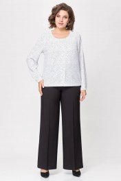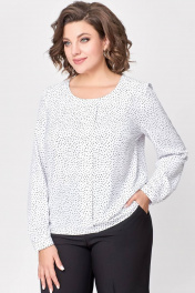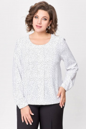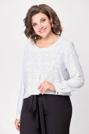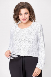 Белая блуза из поливискозной ткани с разрезом на спинке Swallow 688.2 белый/принт_черные_камни