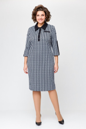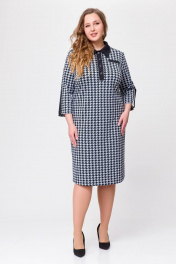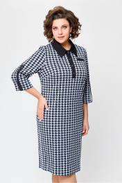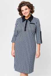 Платье из трикотажа с нагрудными карманами и шлицей Swallow 697.1 черно-белая_гусиная_лапка