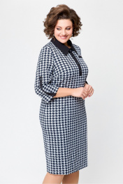 Платье женское полуприлегающего силуэта из трикотажного полотна с дизайном «гусиная лапка». Передняя часть платья с нагрудными вытачками, нагрудным карманом-обманкой с листочкой из отделочной ткани и планкой из отделочной ткани, застёгивающейся на 4 пробивные петли и 4 декоративные пуговицы. Задняя часть платья со средним швом и шлицей. Рукав втачной, одношовный. По нижнему краю закреплена пата, из отделочной ткани, которой можно регулировать длину рукава. Длина изделия 52,54,56 размер - 103 см. (±1 см). Длина изделия 58,60,62 размер - 105 см. (±1 см). Длина рукава – 46 см (±1 см). !!!Ремень не входит в комплектацию. Цвет изделия может отличаться по тону в зависимости от настроек вашего монитора.