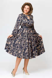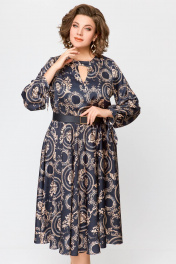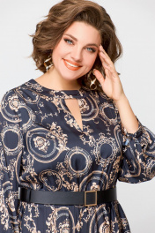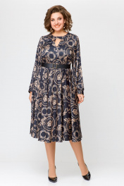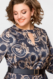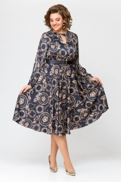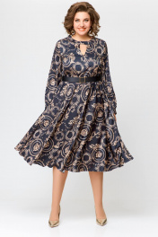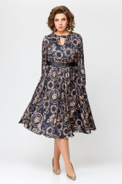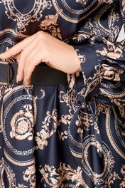 Элегантное платье из шёлка с карманами, отрезная по талии Swallow 707 черный/бежевый_принт