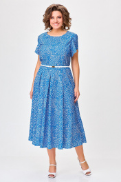 Платье А-силуэта из вискозы: с ремнем, рукава 15 см Swallow 757 голубой+камушки