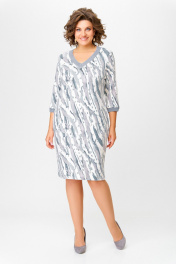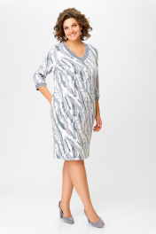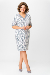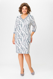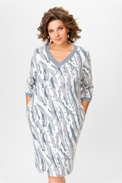 Платье из трикотажа с нагрудными вытачками и карманами Swallow 782.1 молочный/серо-голубой_принт