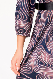 Платье Х-образный силуэт с карманами и ремнем Swallow 799 сине-черный/принт"галактика"