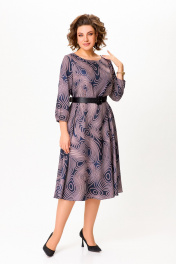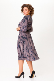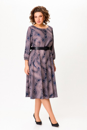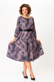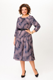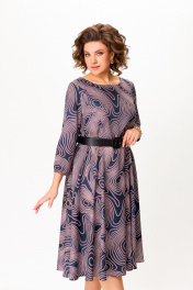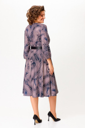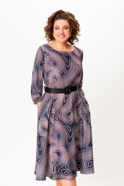 Платье из мягкой вискозной ткани, Х-образного силуэта, отрезное по линии талии. Перед и спинка лифа с талиевыми вытачками. Юбка расклешённая с карманами в боковых швах. В среднем шве спинки застёжка на потайную тесьму молнию. Горловина округлой формы, рукав втачной длиной 4/5, по низу собран на эластичную тесьму-резинку. В комплекте ремень с декоративной пряжкой. Длина платья по спинке – 113(+/-1)см. Длина рукава – 51(+/-1)см.