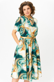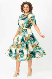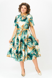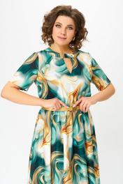 Платье Swallow 833 бирюзово-золотой_принт