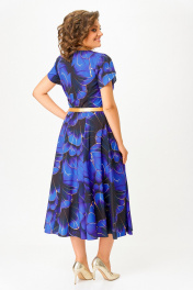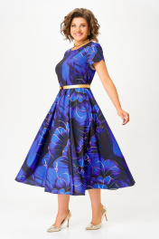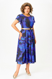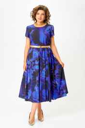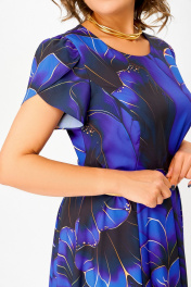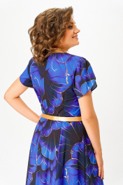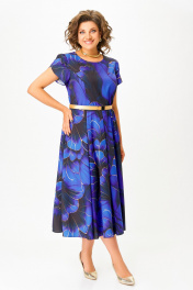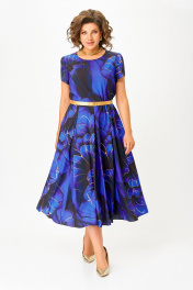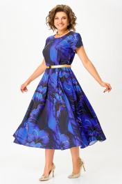 Платье женское из мягкой вискозной ткани, Х-образного силуэта с полуприлегающим лифом. Платье отрезное по линии талии. По переду лифа отрезные рельефы, по спинке талиевые вытачки. Юбка расклешённая из шести клиньев со встречными складками по линии талии. В среднем шве спинки застёжка на потайную тесьму-молнию. Рукав втачной покроя тюльпан, длина рукава 15 см. В подарок ремень с декоративной пряжкой. В размере 64 пояс из основной ткани. Длина изделия по спинке 120 см.(+/-2 см)