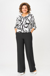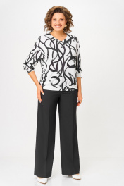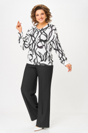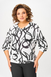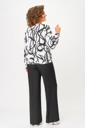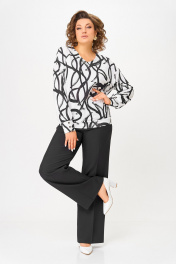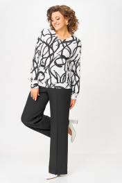 Джемпер из вискозного трикотажного полотна свободного силуэта со спущенной линией плеча. Горловина мягкой V-образной формы, рукав длинный, по низу присобран на манжеты из основной ткани, которые украшены тремя декоративными пуговицами. Низ джемпера оформлен притачной планкой из основной ткани. Длина изделия по спинке – 63(+/-2) см Длина рукава с манжетой от высшей точки горловины- 72 см
