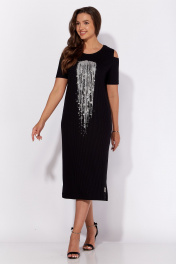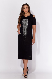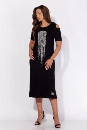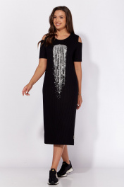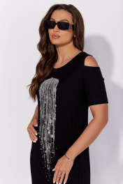 Платье из трикотажа с разрезом и принтом для летних дней TAiER 1206-1 черный