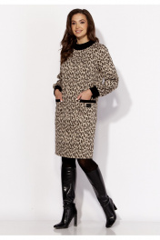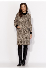 Коричневое демисезонное платье из трикотажа с нагрудными деталями TAiER 1323