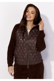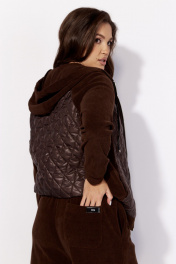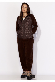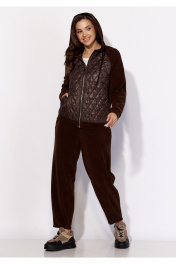 Комплект женский, 2хпредметный, состоящий из куртки и брюк. Куртка прямого силуэта с длинным рукавом. Рукав "реглан" с манжетой по низу. По переду и спинке рельефы из пройм. Спереди, в рельефах, карманы. Застежка центральная , на "молнию". Горловина оформлена капюшоном с кулисой по краю. Низ куртки на манжете. Центральные детали переда и спинки из стежки (плащевка на синтепоне.) Брюки-слаксы, объемные, к низу зауженные. Карманы в боковых швах. Сзади накладной карман с декоративной нашивкой. Пояс цельнокройный, на резинке.
