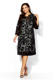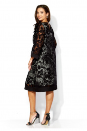 Комплект женский, 2х предметный, состоит из верхнего и нижнего платья. Верхнее платье выполнено из ткани органза. Платье А-силуэта с рукавом длинной 3/4. Рукав со спущенной линией плеча. По низу рукава и платья отделочные планки из атласа. Вырез горловины по переду "лодочка", по спинке фигурный акцентирован атласной бейкой. По спинке декоративная нашивка. Декором служит съемный цветок. Нижнее платье из вискозного атласа А-силуэта с выточками нагрудными, без рукавов. Вырез горловины по переду У-образной формы, закругленный, по спинке острый. По спинке средний шов.