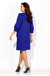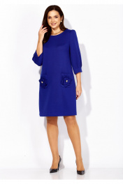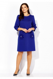 Платье женское, А силуэта, с рукавом длинной 3/4. Рукав втачной, со сборкой по окату, и мягкими складками по низу. По переду нагрудные вытачки. Вырез горловины круглой формы. Карманы накладные, акцентированы стилизированным цветком с декором. По спинке средний шов с отделочной нашивкой сверху.