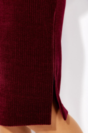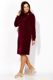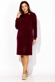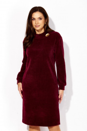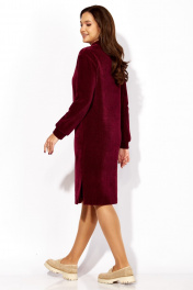 Платье женское, прямого силуэта с длинным рукавом. Рукав со спущенной линией плеча, по низу на манжете. Горловина оформлена высокой, мягкой стойкой. По боку разрез, акцентирован декоративной стойкой. Спинка без особенностей.